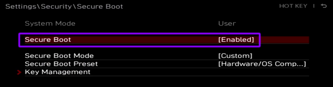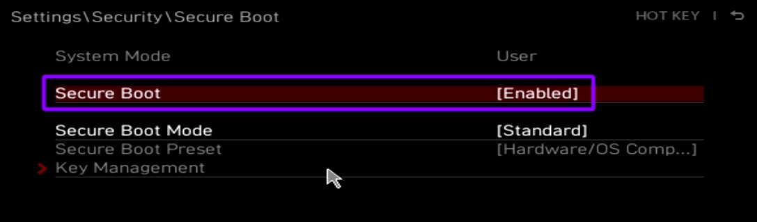 Nachdem Sie das UEFI erneut betreten haben, öffnen Sie erneut die Secure Boot-Einstellungen und setzen Secure Boot auf Aktiviert.
