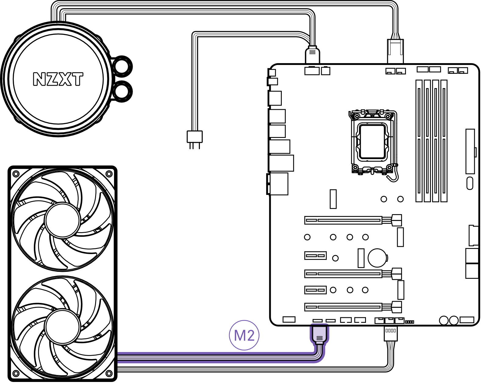 Wie die Pumpenkappe werden die mit den oben genannten Kraken Core-Modellen gelieferten Lüfter ausschließlich von 5V Addressable RGB (ARGB) betrieben, das auf vielen Motherboards unter verschiedenen Bezeichnungen wie ADD_HEADER, JRAINBOW, D_LED, ADD_GEN2 usw. zu finden ist. Weitere Informationen finden Sie im Benutzerhandbuch Ihres Motherboards.