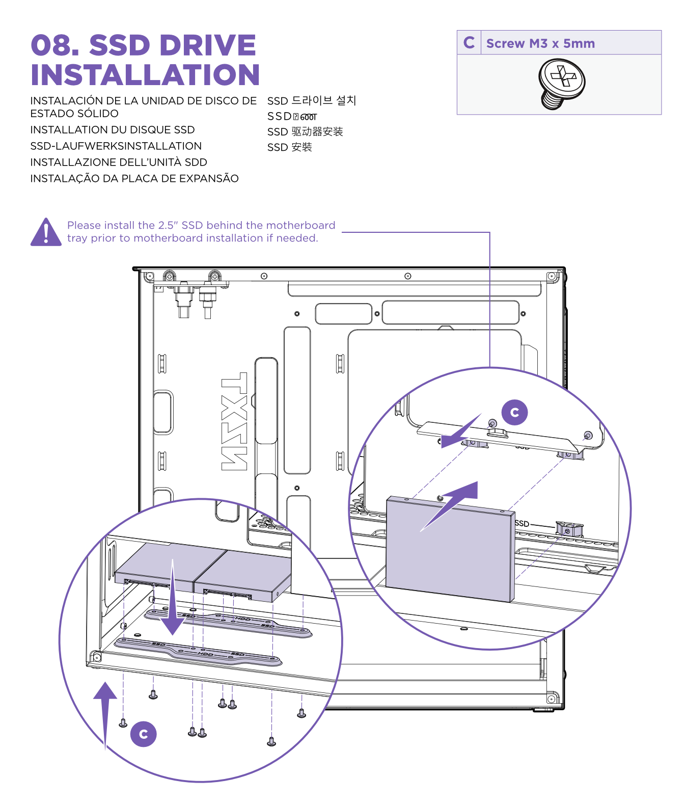 These can be secured to the case using the included M3 x 5 mm screws from the accessory box.