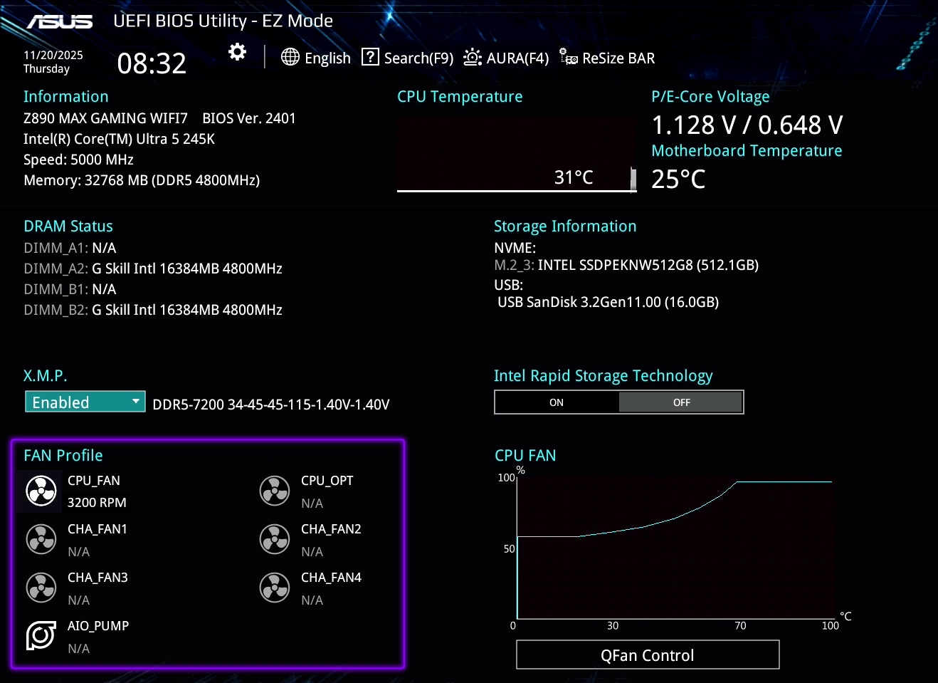 Example: System idle temperature is 31°C indicating the system is properly cooled.