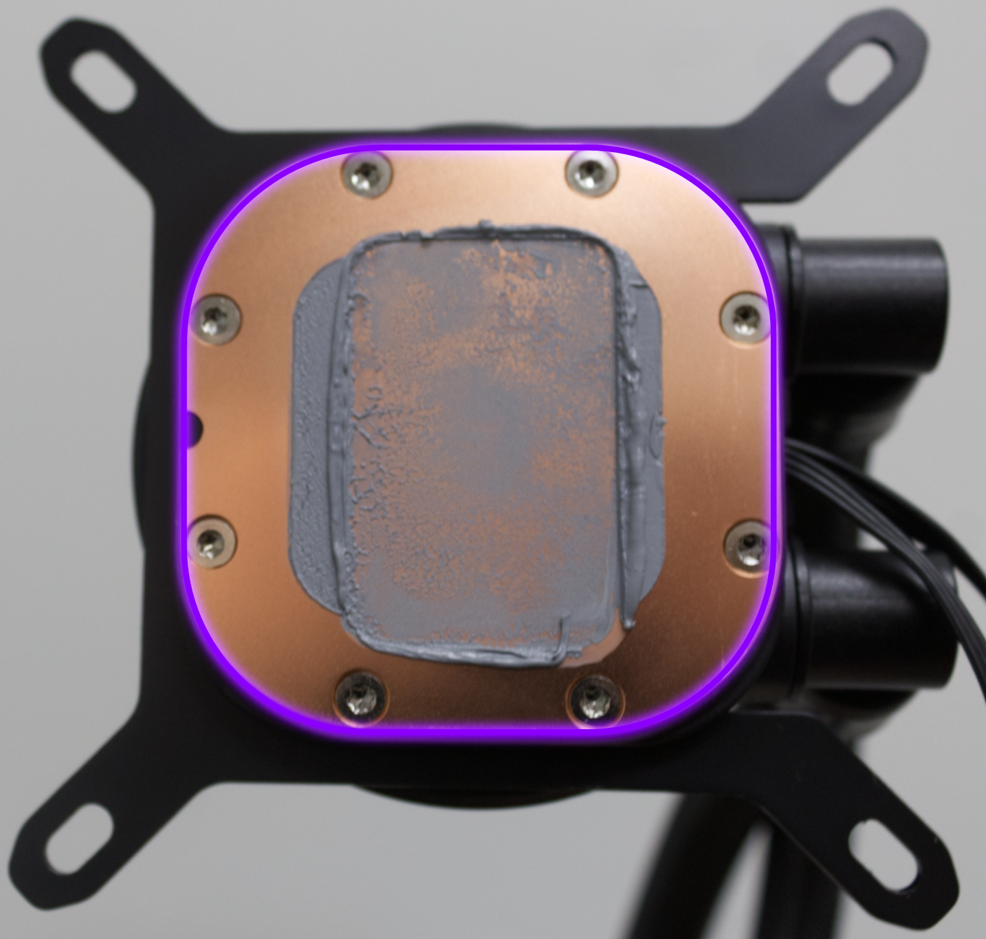 Lastly a common issue at the pump cap can come from improper installation of the CPU cooler. As all NZXT Kraken coolers come with pre-applied thermal paste, the best way to check the contact is to unscrew the Pump Cap from the CPU and check that the thermal paste has spread from the cold plate of the cap to the surface of the CPU.