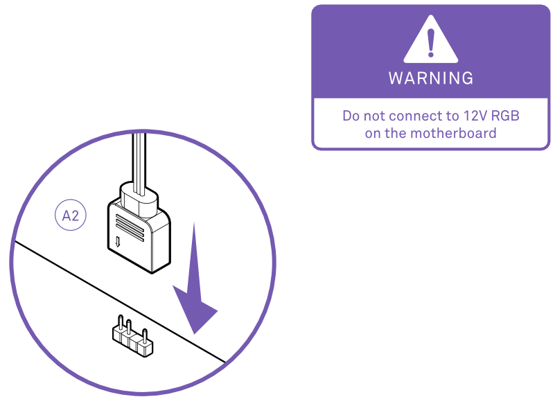 ¡No intentes conectar el encabezado ARGB de 5V del Kraken Core o su ventilador incluido a conectores RGB de 12V o UART! Esto puede causar daños permanentes a tu PC y/o al Kraken. Los daños causados por una instalación incorrecta del Kraken no están cubiertos por la garantía. |