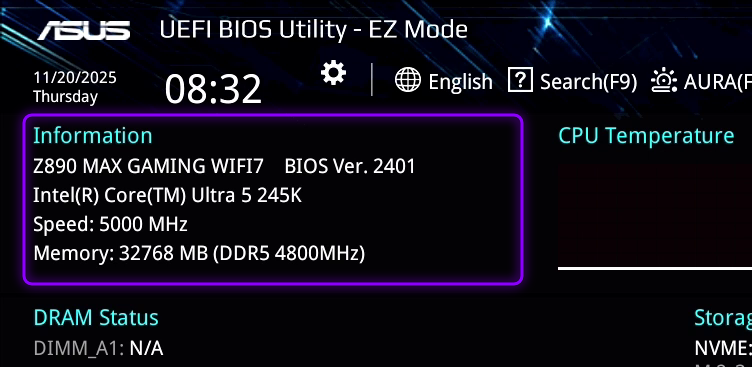 Esta guía está escrita específicamente para PCs Gaming NZXT que utilizan placas base con la marca Asus. Puedes confirmar el modelo de tu placa base en la UEFI BIOS de la placa base, en la aplicación System Information, o revisando las especificaciones del sistema en el software NZXT CAM. Las capturas de pantalla fueron tomadas en la placa base Z890 GAMING MAX Wifi7. Las instrucciones pueden variar de un producto a otro. |