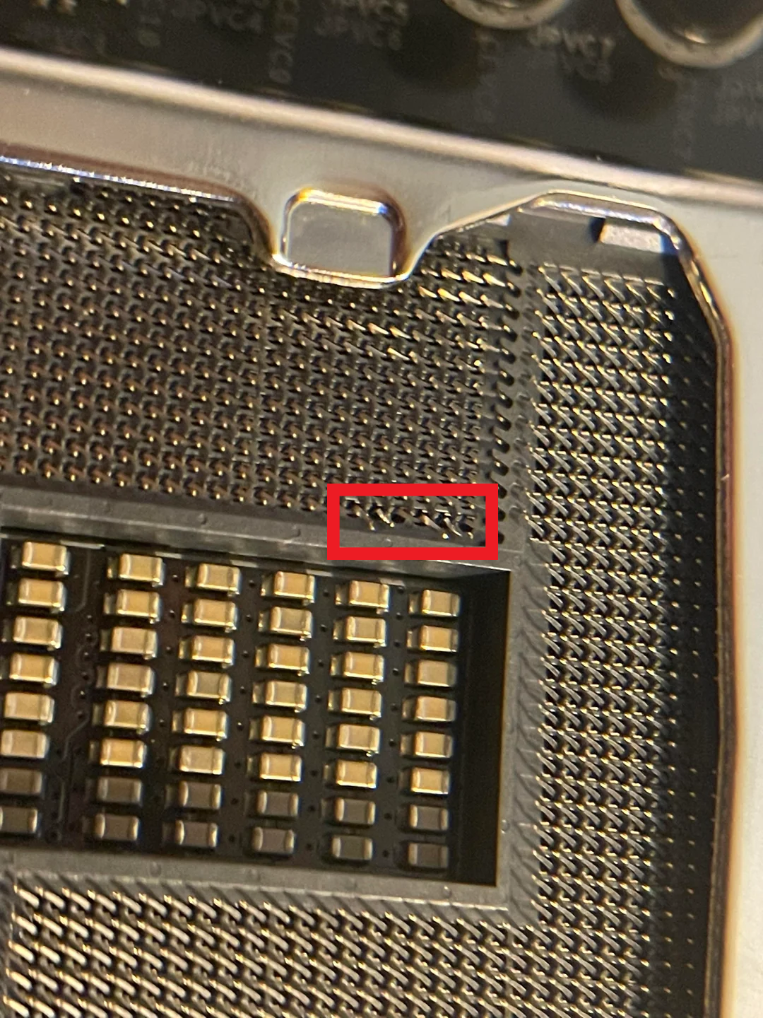Exemple de broches pliées sur un socket LGA, crédit image : reddit u/Wanheda_007