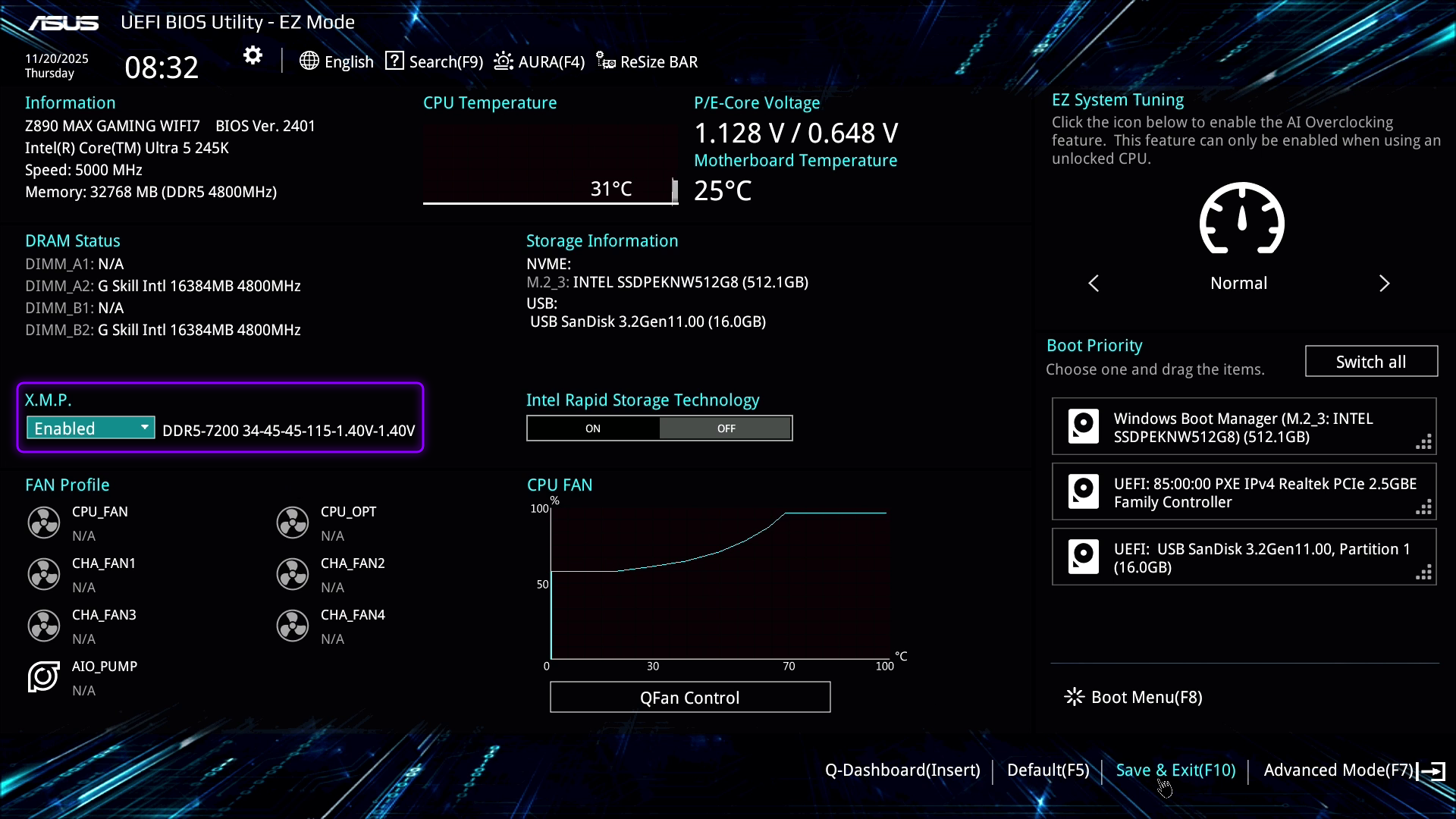 Une fois le profil activé, les spécifications de la RAM apparaîtront à droite de la boîte déroulante. À partir de là, cliquez sur l'option Enregistrer & Quitter en bas de l'écran et sauvegardez vos paramètres pour redémarrer le PC.