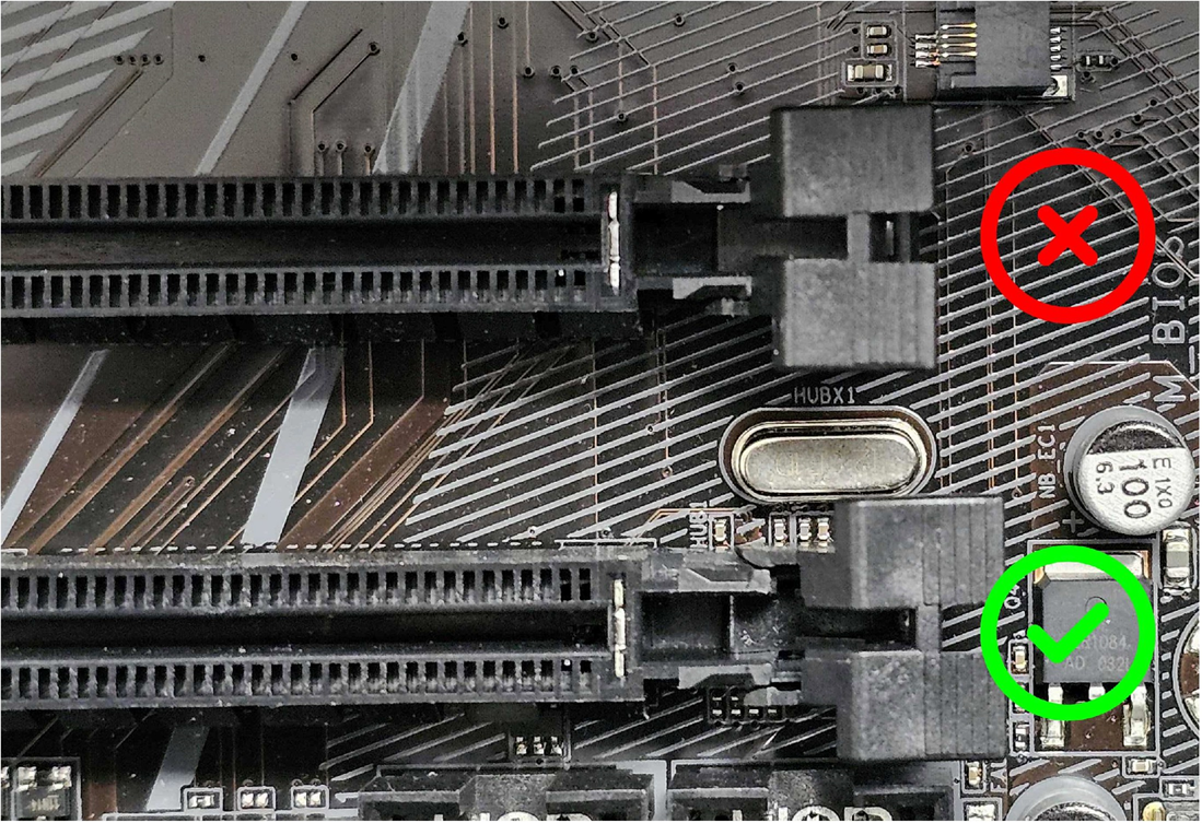 Infine, sblocca il fermo dellascheda madre per liberare la GPU. Se la chiusura non si muove, prova a premere la scheda nell'alloggiamento prima di sbloccarla, perché la linguetta della scheda potrebbe tirare la linguetta.