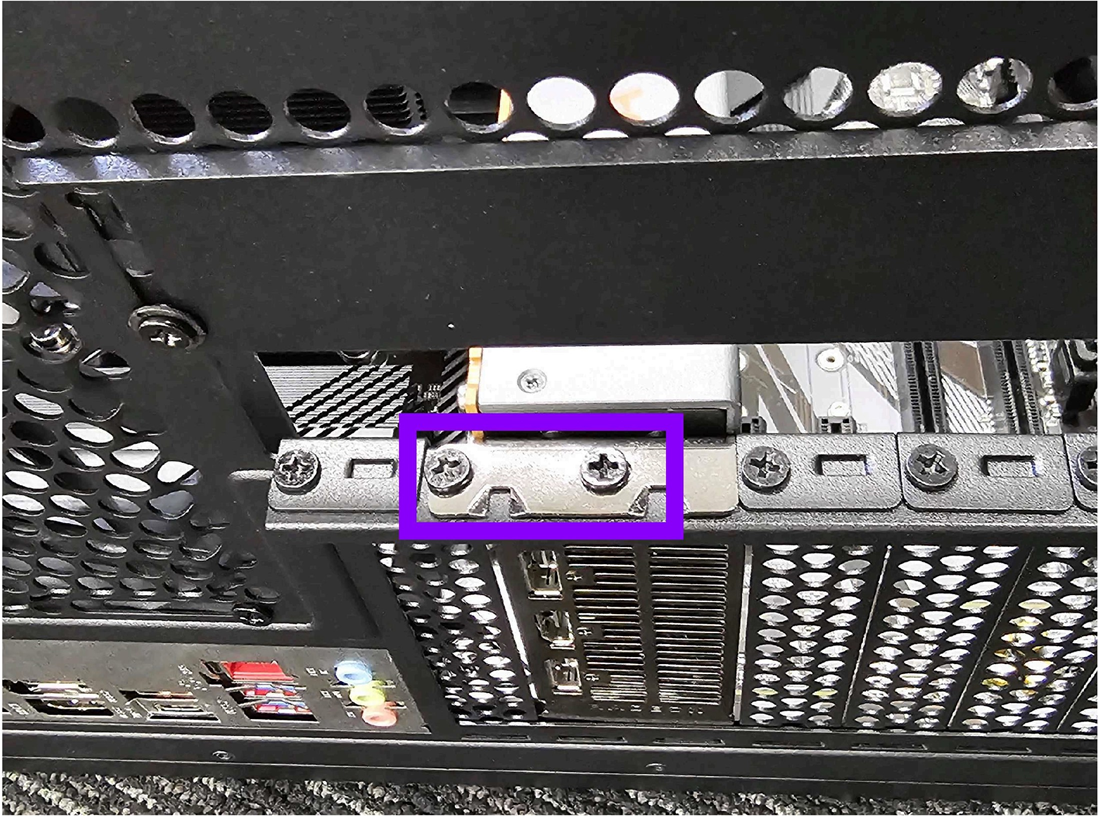Individua e rimuovi le viti che fissano la scheda grafica al telaio del PC. A seconda delle dimensioni del tuo biglietto, si tratta di un numero di viti compreso tra 1 e 3. Alcuni case, come la serie H5 di NZXT, possono avere una piastra di copertura che deve essere allentata o rimossa per accedere a queste viti
