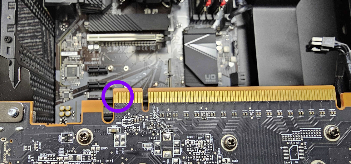 Durante l'ispezione del connettore perimetrale, potresti notare alcuni pin più corti degli altri. Questo è normale e fa parte delle specifiche del PCle. Tuttavia, se il perno sembra strappato o piegato, potrebbe indicare che il perno è danneggiato.