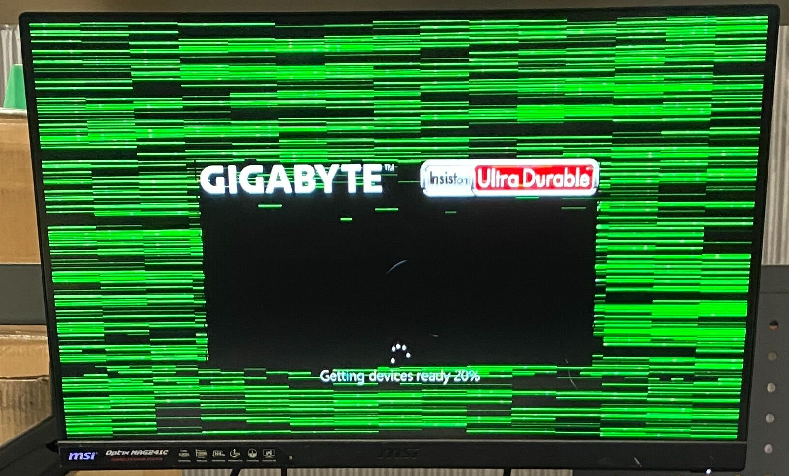 Artefatti verticali in cui i motivi sono disegnati sullo schermo dall'alto verso il basso sono generalmente legati al monitor. Se si verifica Vertical Artifacting, si consiglia di scollegare il monitor e provare a collegare lo stesso monitor con un cavo diverso o di utilizzare un altro monitor per verificare se il problema persiste. Se il problema persiste con un monitor e un cavo diversi, il problema potrebbe essere legato alla GPU.