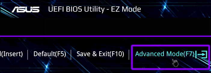 Una volta nell'UEFI, assicurati di essere in Modalità Avanzata controllando in alto a sinistra dello schermo. Se appare Modalità EZ o Modalità Facile, dovrai passare alla Modalità Avanzata premendo F7 o cliccando il link in basso a destra dello schermo.