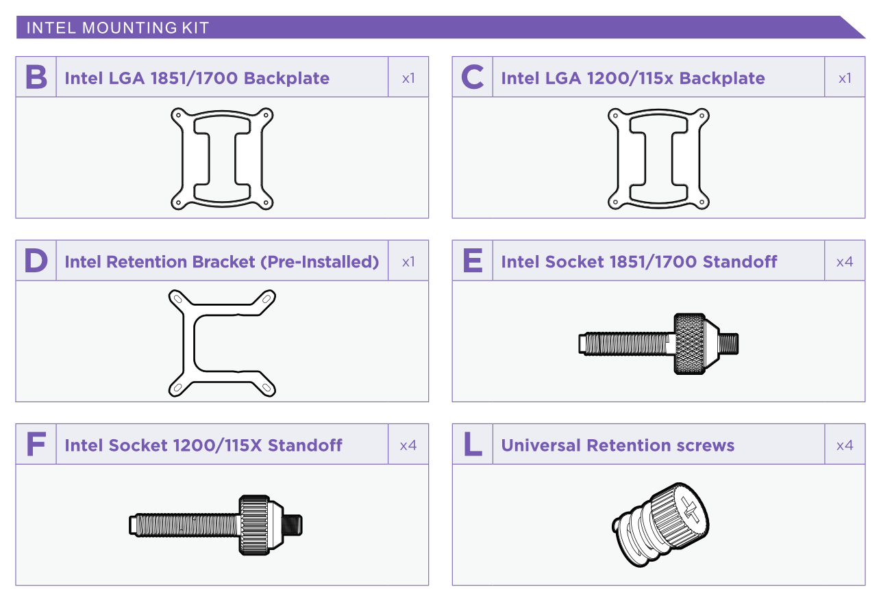 L'installazione del Kraken Core è un processo semplice e abbastanza lineare, senza necessità di cavi breakout aggiuntivi, connessioni USB o controller dedicati. Questa guida coprirà l'installazione del Kraken Core con i seguenti socket Intel: