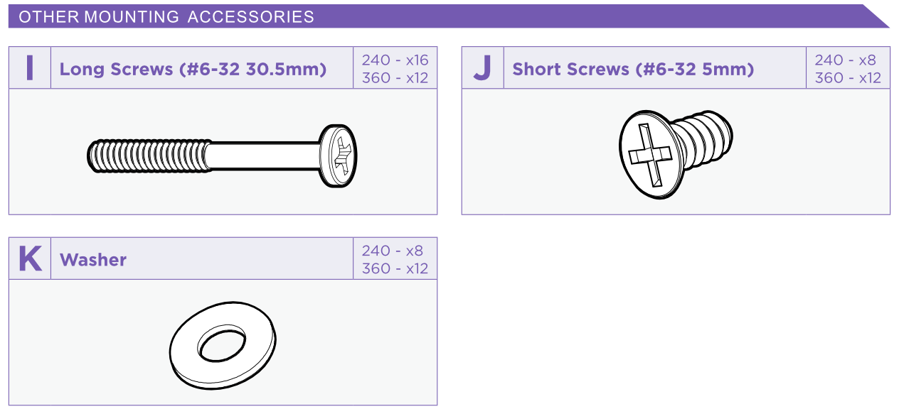 Per questo passaggio della guida avrai bisogno del seguente hardware dalla borsa degli accessori: