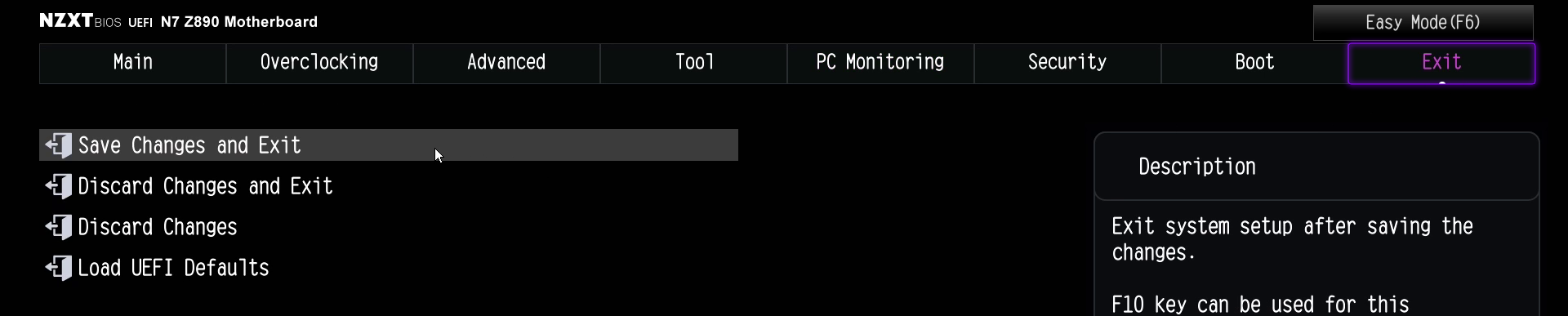 ポンプとファンスピードの両方を調整したら、上部バーのExitをクリックし、変更を保存して終了を選択してPCを再起動します。