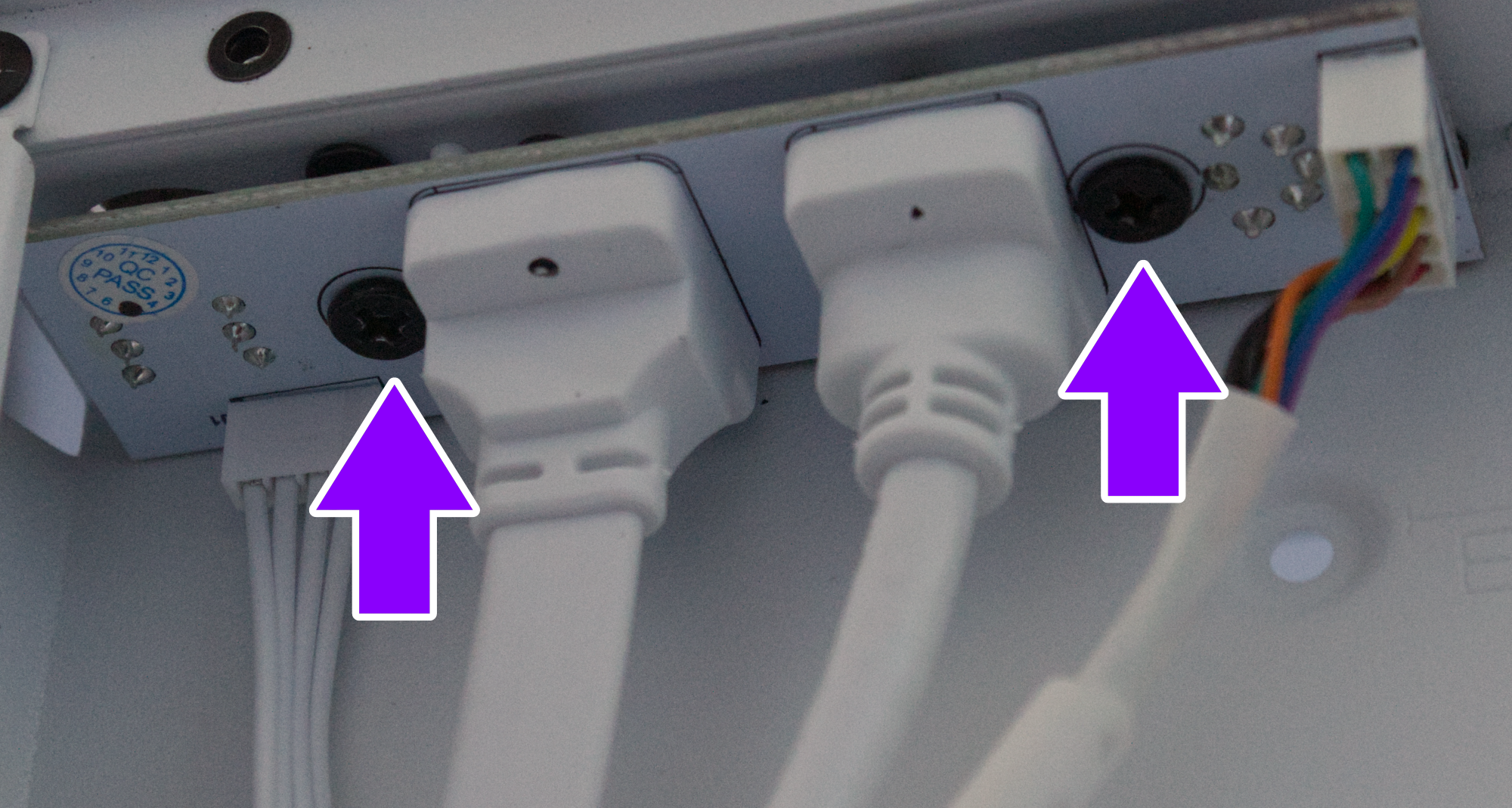 상단 I/O 모듈을 제거하려면 필립스 #1 드라이버를 사용하여 모듈을 고정하는 두 개의 나사를 풀어주세요. 나사를 제거하면 패널이 쉽게 분리됩니다.