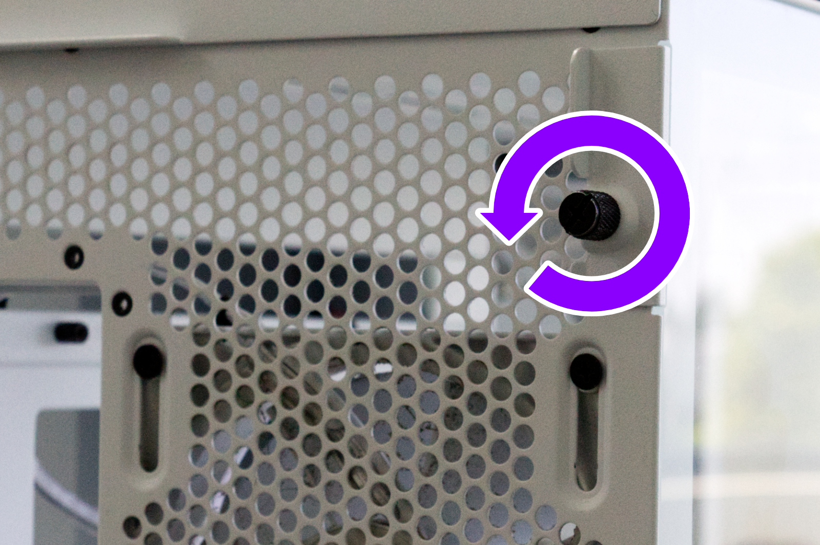 Graças ao design quase sem ferramentas do H6, a remoção dos painéis do gabinete é incrivelmente simples. Antes de começar, você precisará afrouxar os dois parafusos de polegar de travamento que seguram o grande painel lateral de vidro e o painel lateral metálico.